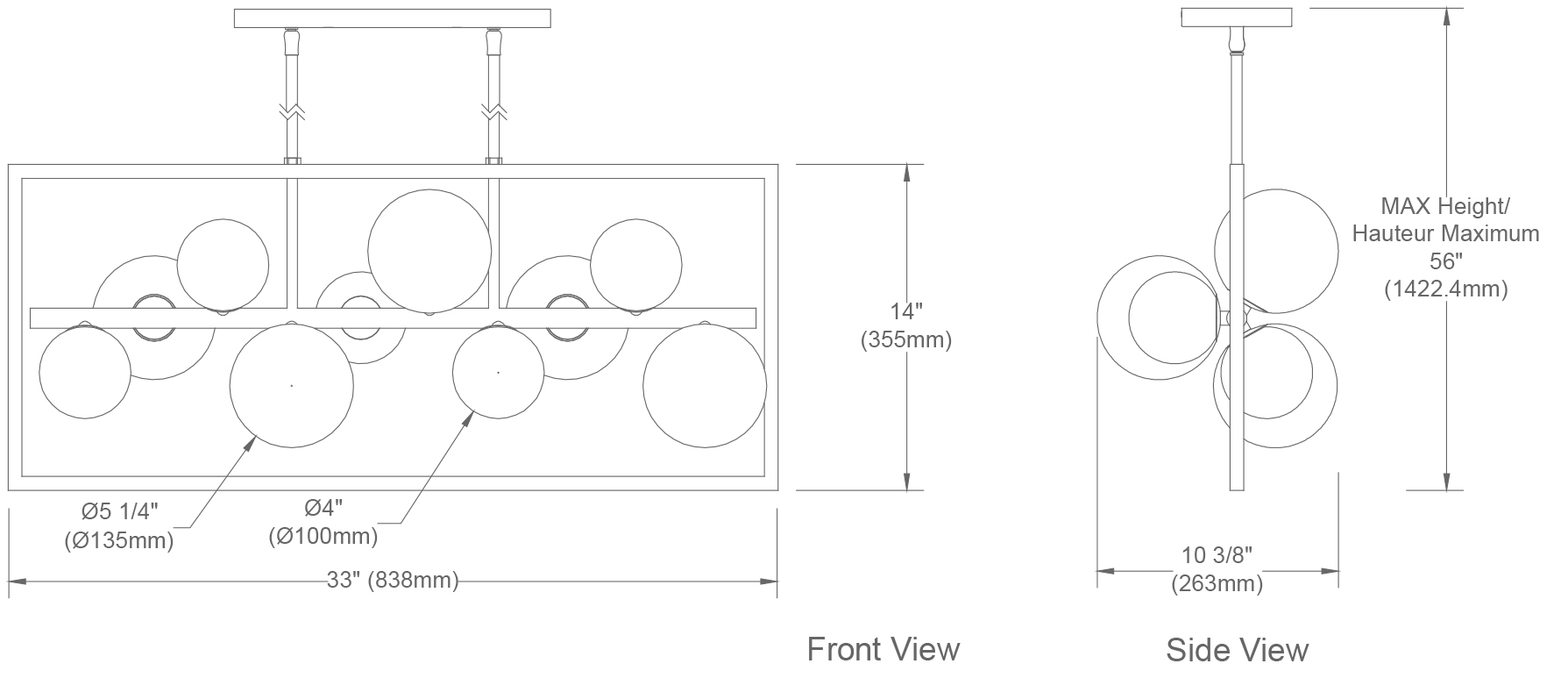 Based on the eye-catching contrast between a linear frame and reflective glass globes bulbs, the Glasgow family of lighting takes the concept in unexpected directions and arresting configurations sure to garner attention. The linear metal frame and globe lights come in a choice of color/finish combinations from warm to dramatically stylish. It’s a look that adds both visual and textural contrast. With both vertical and horizontal, simple and elaborate designs available, Glasgow lighting adds a unifying sense of opulent style to your home.
